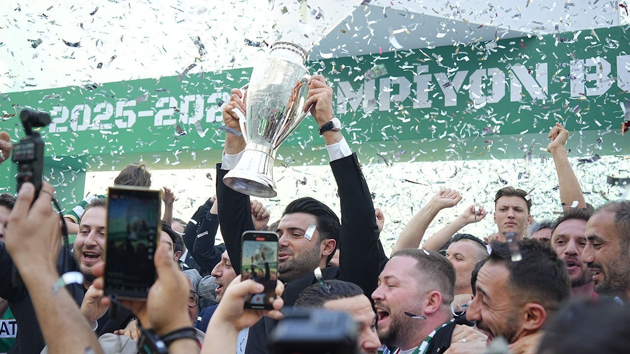 2’nci Lig Kırmızı Grup’ta şampiyon olarak 1’inci Lig’e yükselen Bursaspor’un şampiyonluğu Timsah Arena’da düzenlenen törenle kutlandı. Kutlamalara yeşil-beyazlı taraftarların yanı sıra Bursa Valisi Erol Ayyıldız, İl Emniyet Müdürü Kadir Gökce, Bursa Büyükşehir Belediye Başkan Vekili Şahin Biba, ilçe belediye başkanları ile AK Parti İl Başkanı Davut Gürkan, milletvekilleri, siyasi parti ve iş dünyası temsilcileri de katıldı.